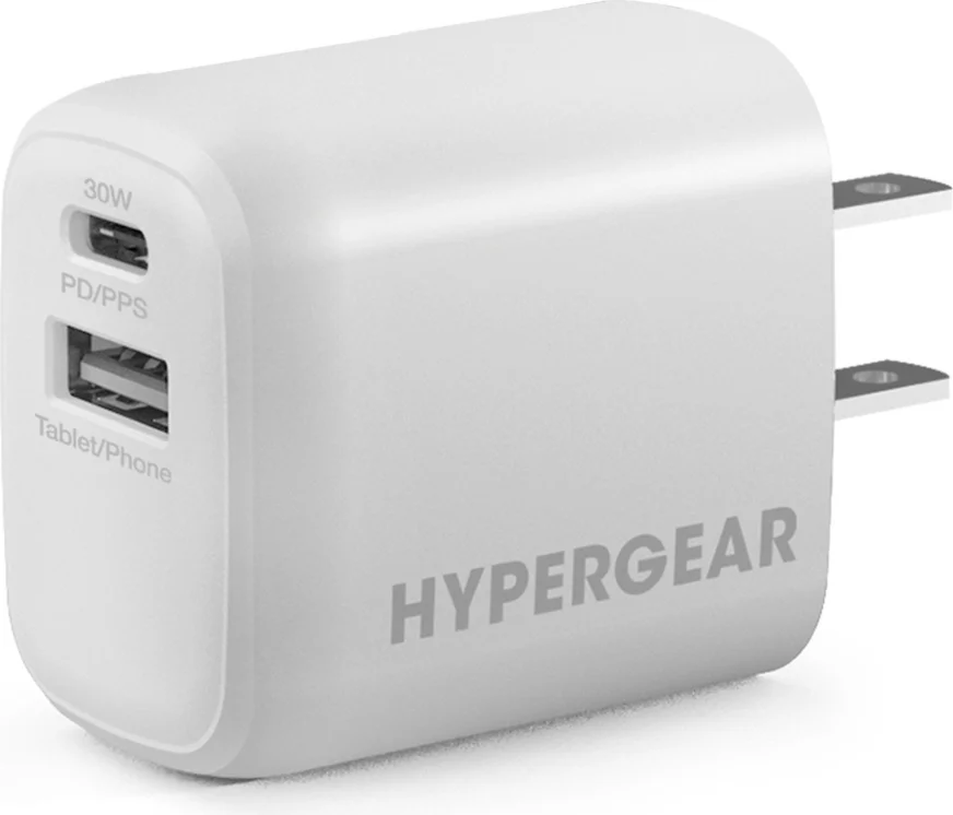 HyperGear 30W Dual Port USB-C PD (30W Max) & USB-A (18W Max) Wall Charger Hub - White