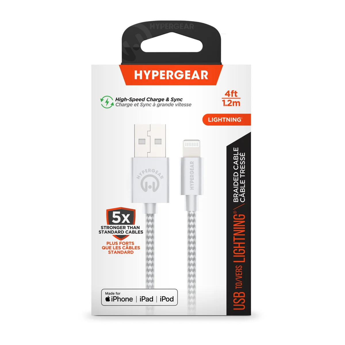 Câble tressé de recharge et de synchronisation USB-A vers Lightning HyperGear de 4 pi (120 cm)