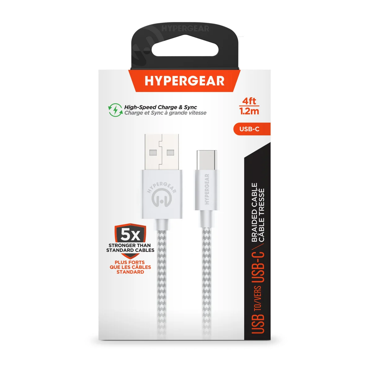 Câble tressé de recharge et de synchronisation USB-A vers USB-C HyperGear de 4 pi (120 cm)