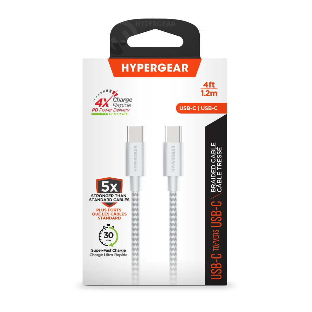 Câble tressé de recharge et de synchronisation USB-C vers USB-C HyperGear de 4 pi (120 cm)